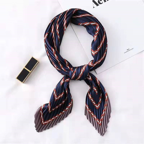 女性用韓国スタイルスカーフスクエアプリーツシルクスカーフネックゲイター